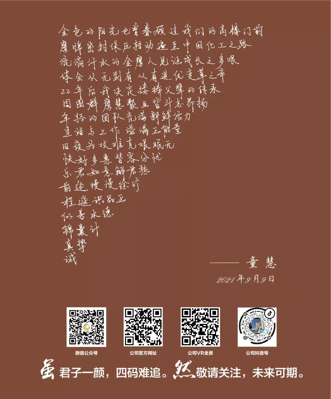 沖鋒的號角再次吹響,我們又一次出發(fā)向前。未來,我們要立足長遠,把握當前,堅定信心,我們將以“有幸金鷹、無悔金鷹”的情懷,以“功成必定有我”的使命擔當,只爭朝夕,不負韶華,共同續(xù)寫金鷹下一個二十年的理想與榮光!